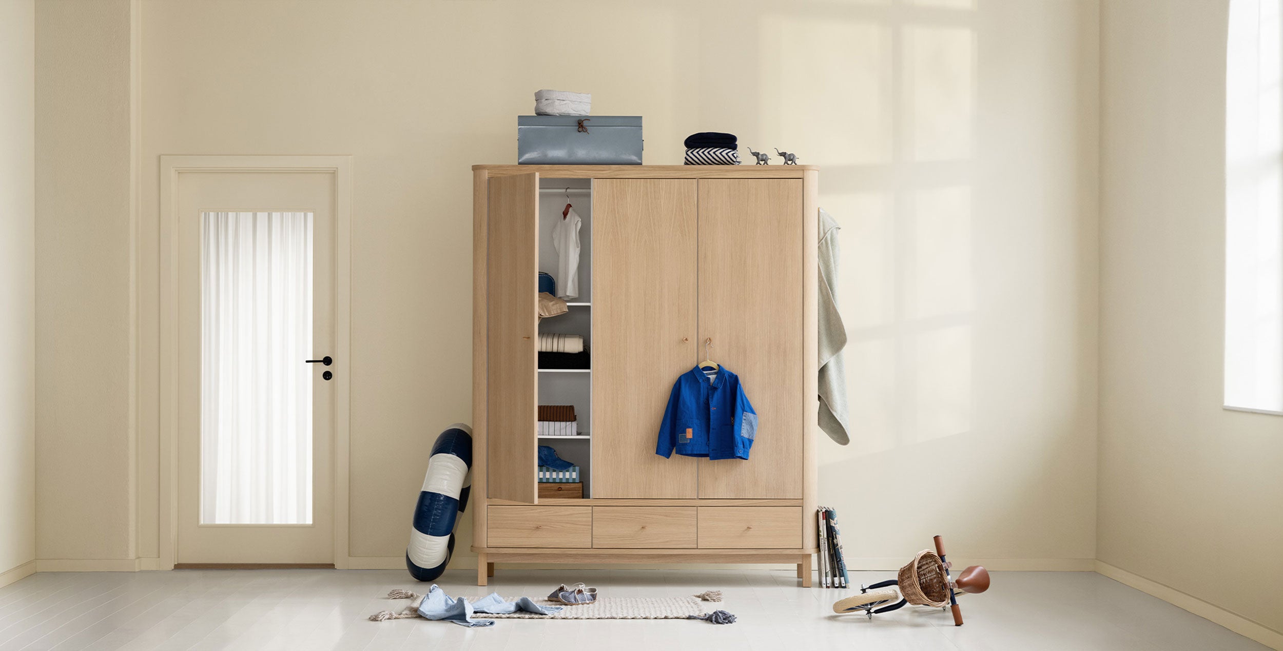 Oliver Furnitures klædeskabe i Wood Collection fungerer som enkle og praktiske møbler med plads til alt fra legetøj til nattøj.