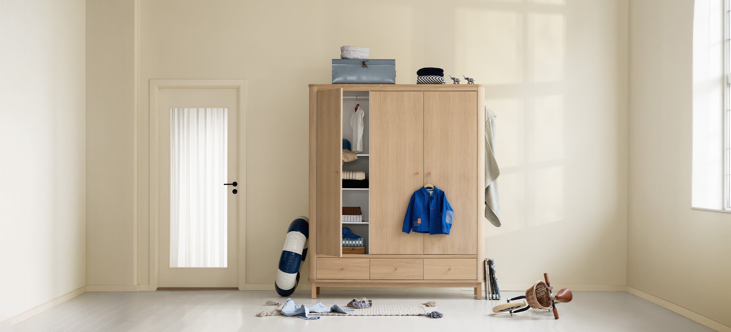 Oliver Furnitures klædeskabe i Wood Collection fungerer som enkle og praktiske møbler med plads til alt fra legetøj til nattøj.