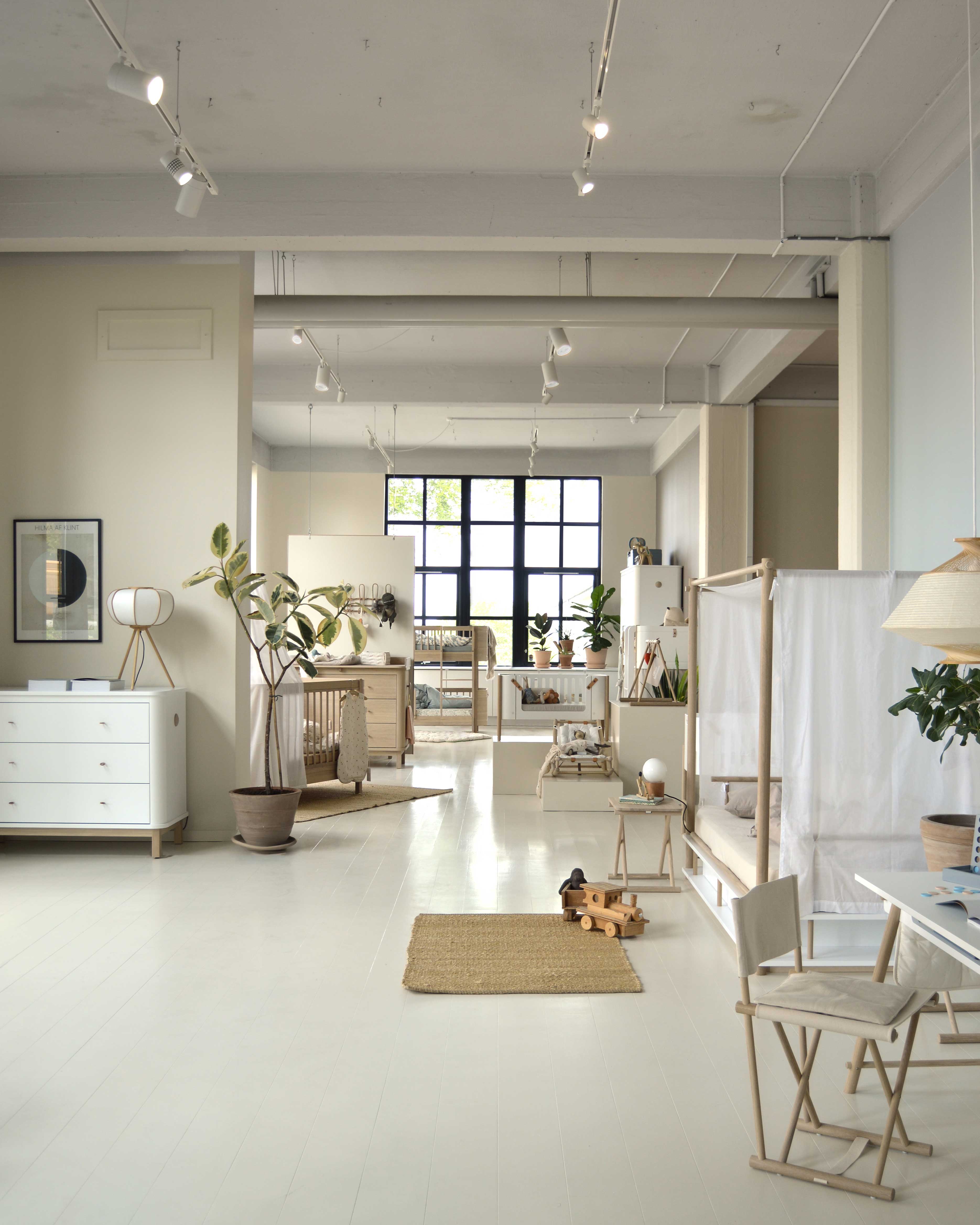 Omgivet af den nordiske natur, møblerne er forankret i, ligger Oliver Furniture butik & showroom i Hellebæk Klædefabrik kun en halv time nord for København. Med udsigt til hav, strand, skov og himmel, kan man opleve kollektionerne i deres helhed, elegant iscenesat på mere end 500 kvadratmeter i klædefabrikkens rå rammer.