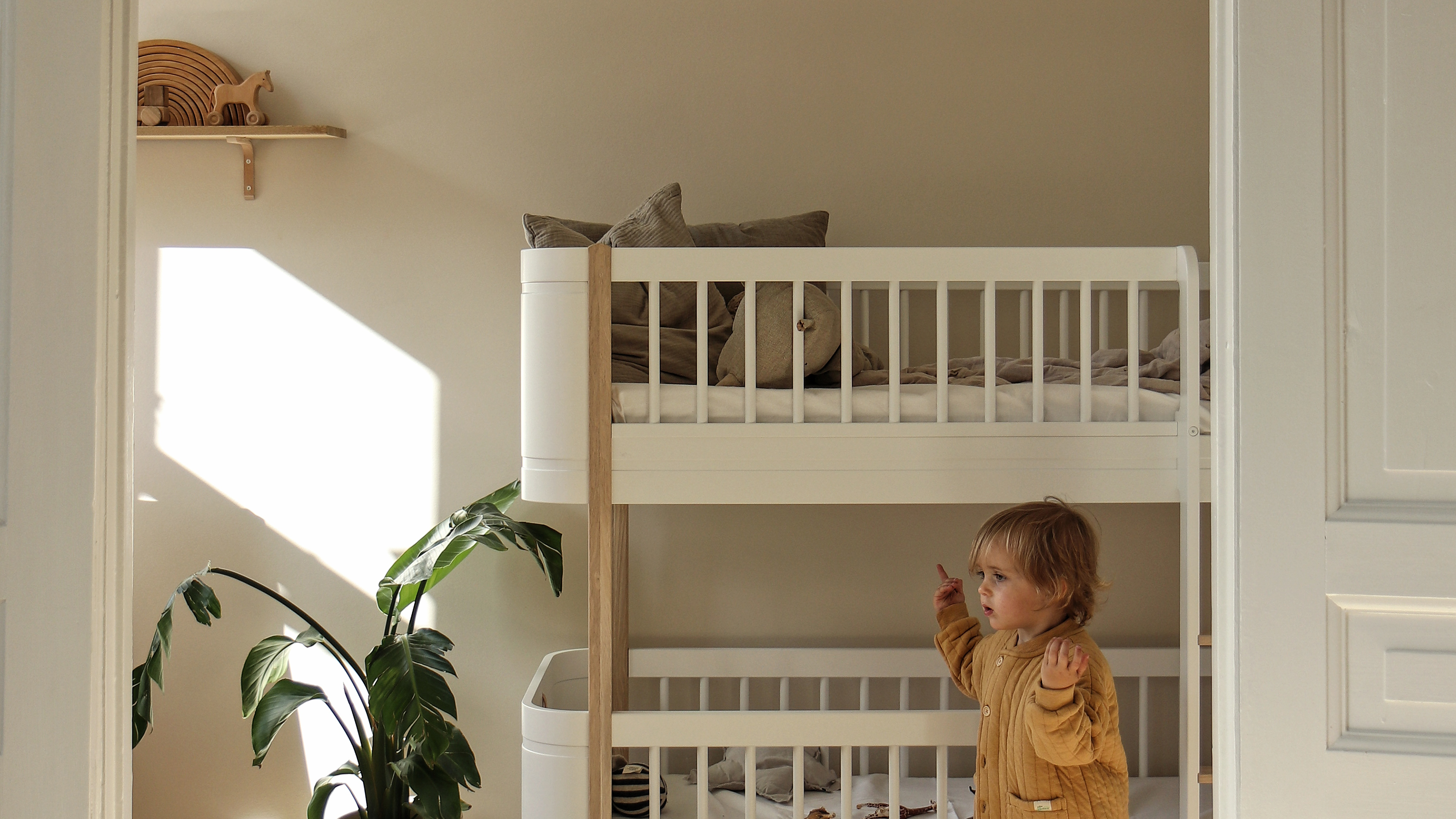 Listen to your child's wishes, but make sure that it is easy to change the interior again, as children often change their minds. So instead of painting the walls in vibrant colour, get some cool wall stickers that are easy to remove. Always remember green plants in the children's room, as they create a nice atmosphere and a healthy indoor climate. It is important to stick to subtle hues in the children's room; calm surroundings usually result in calm children. We redecorate the children's room quite often to suit the children's wishes and needs, which is why it is important to us that everything is removable and easy to move around.