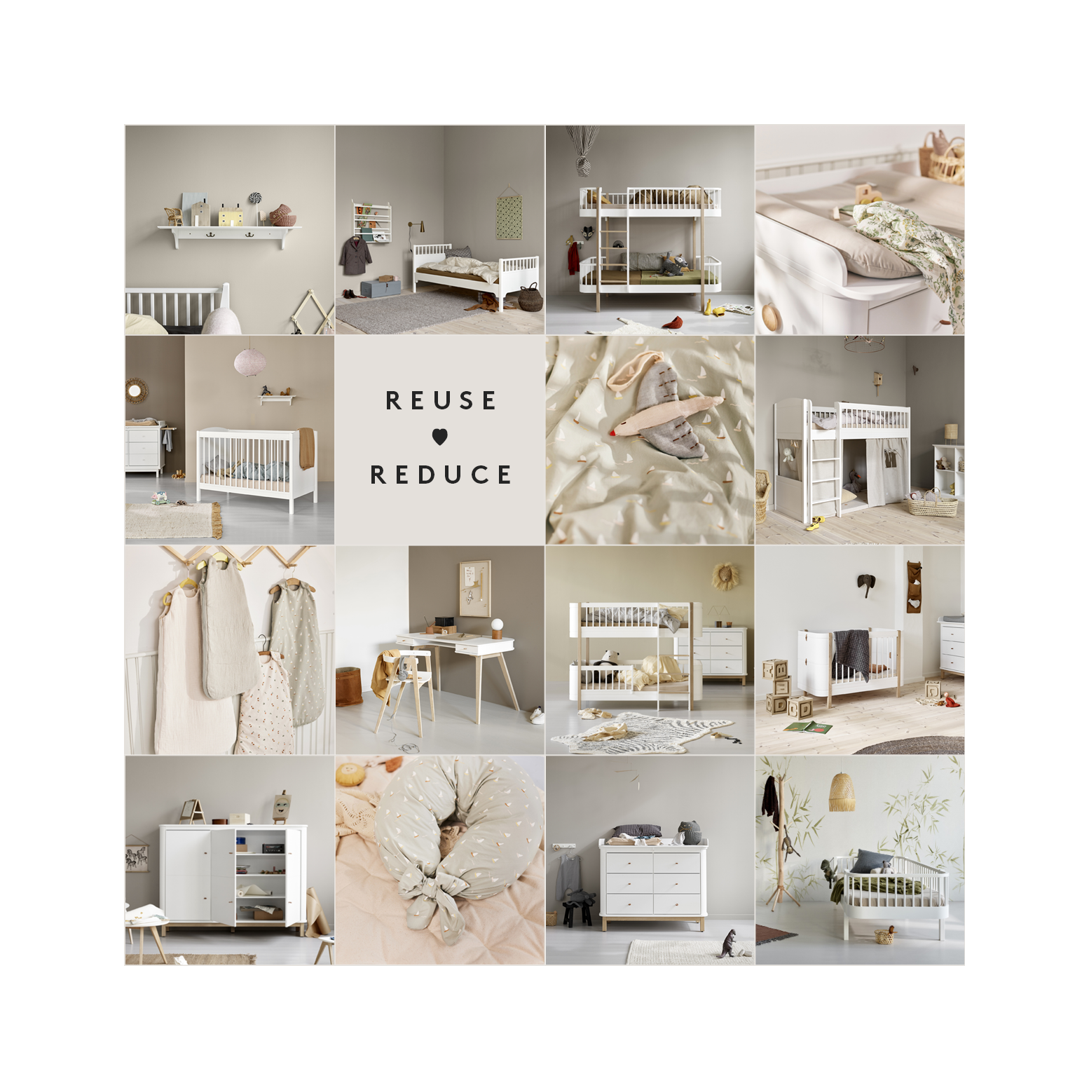 Når vi rydder op, smider vi ikke noget ud. Selvom møblerne har været brugt til fotos og udstillinger, er udgåede og/eller har fejl og mangler, kan de sagtens få nyt liv og være med til at skabe rammerne for den magiske fantasiverden, der udspiller sig på børneværelset.