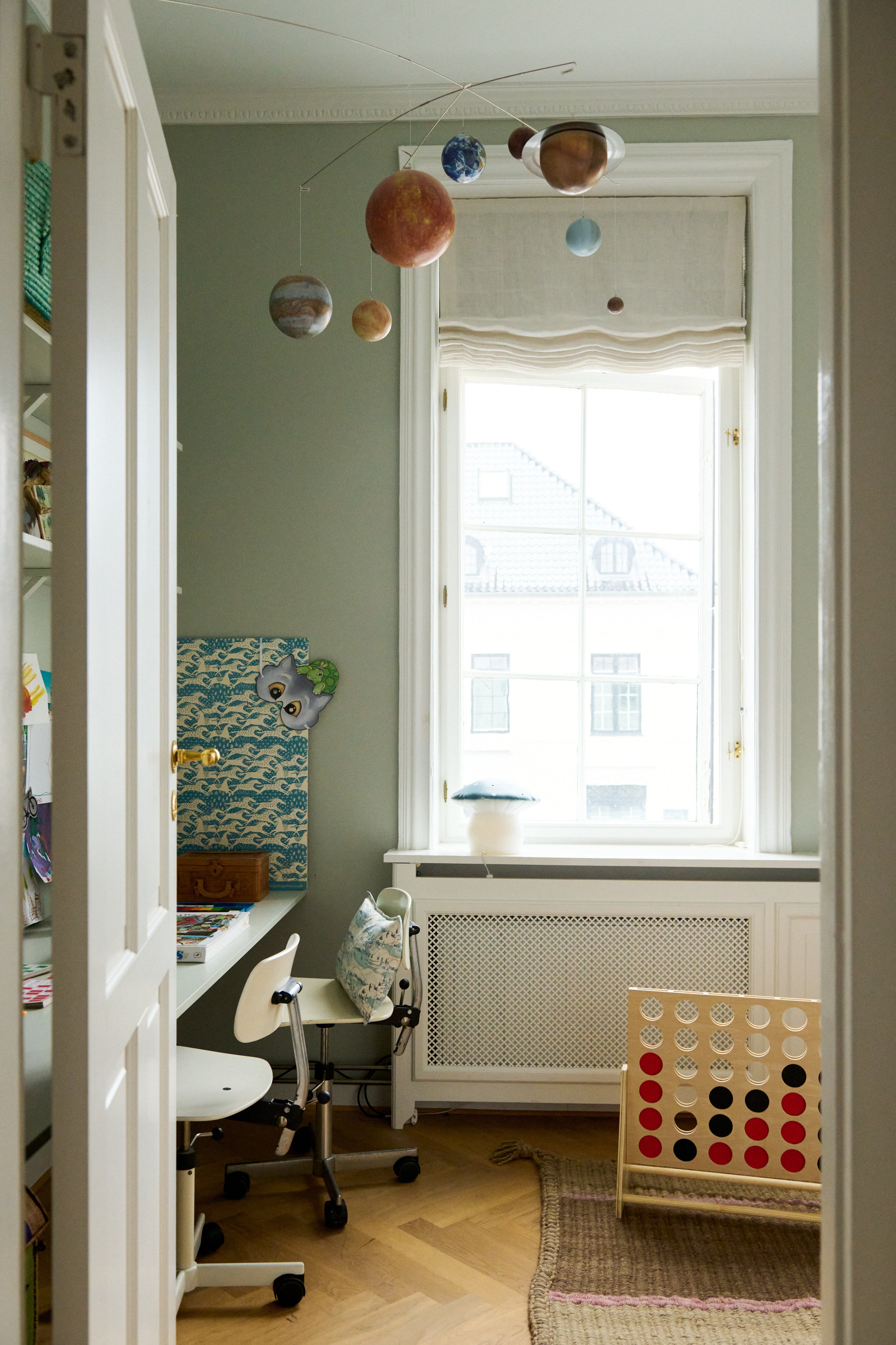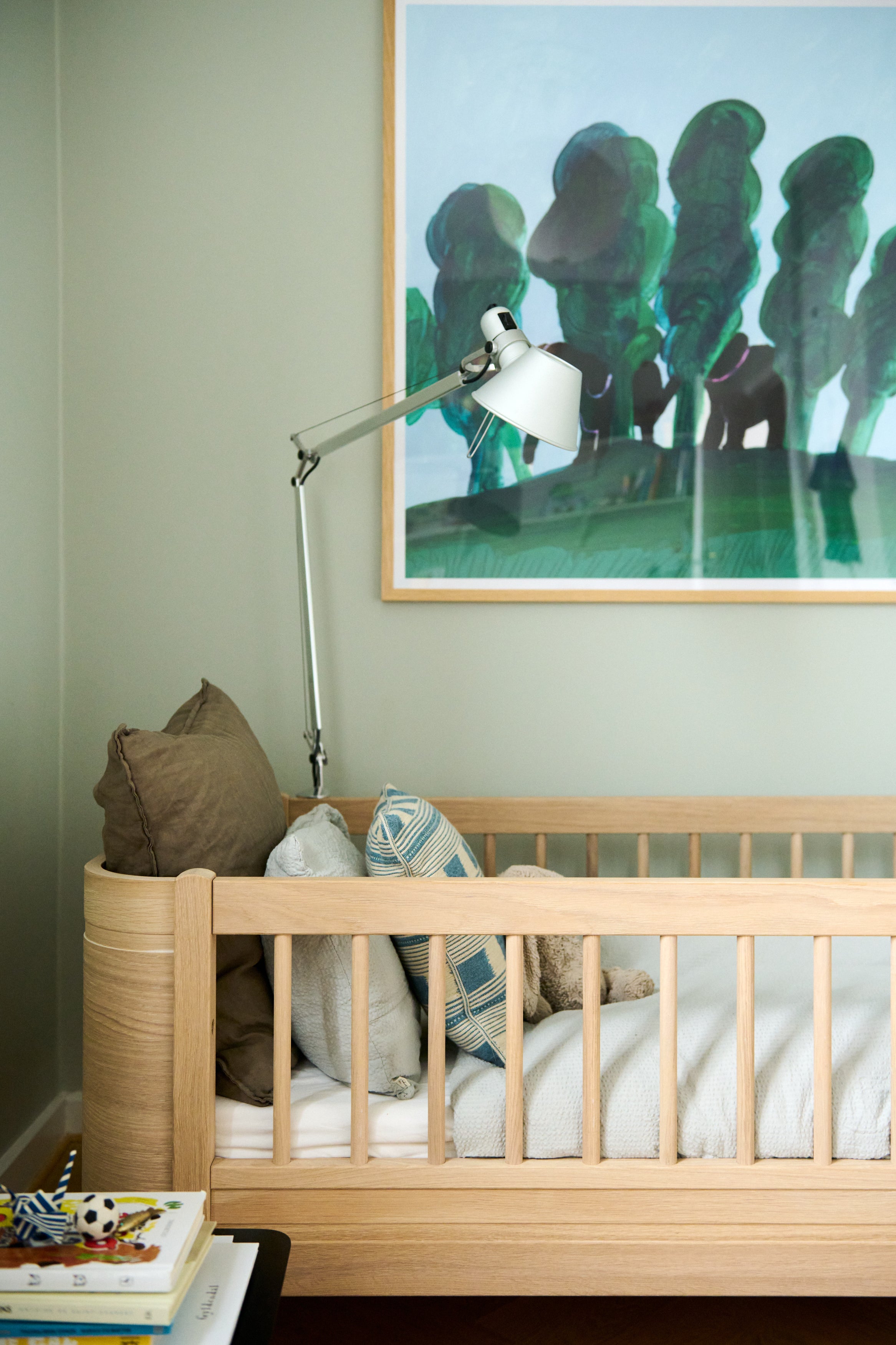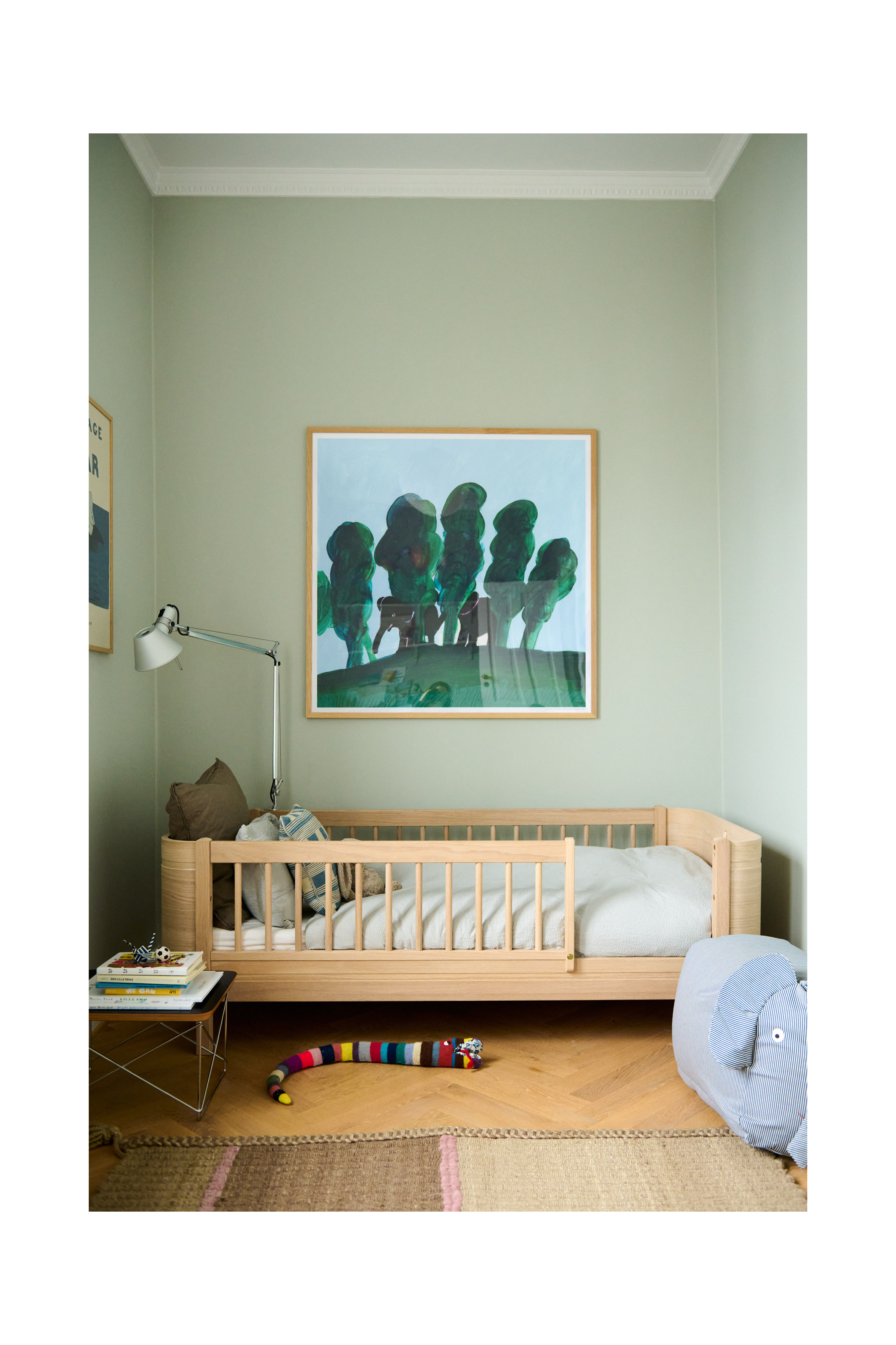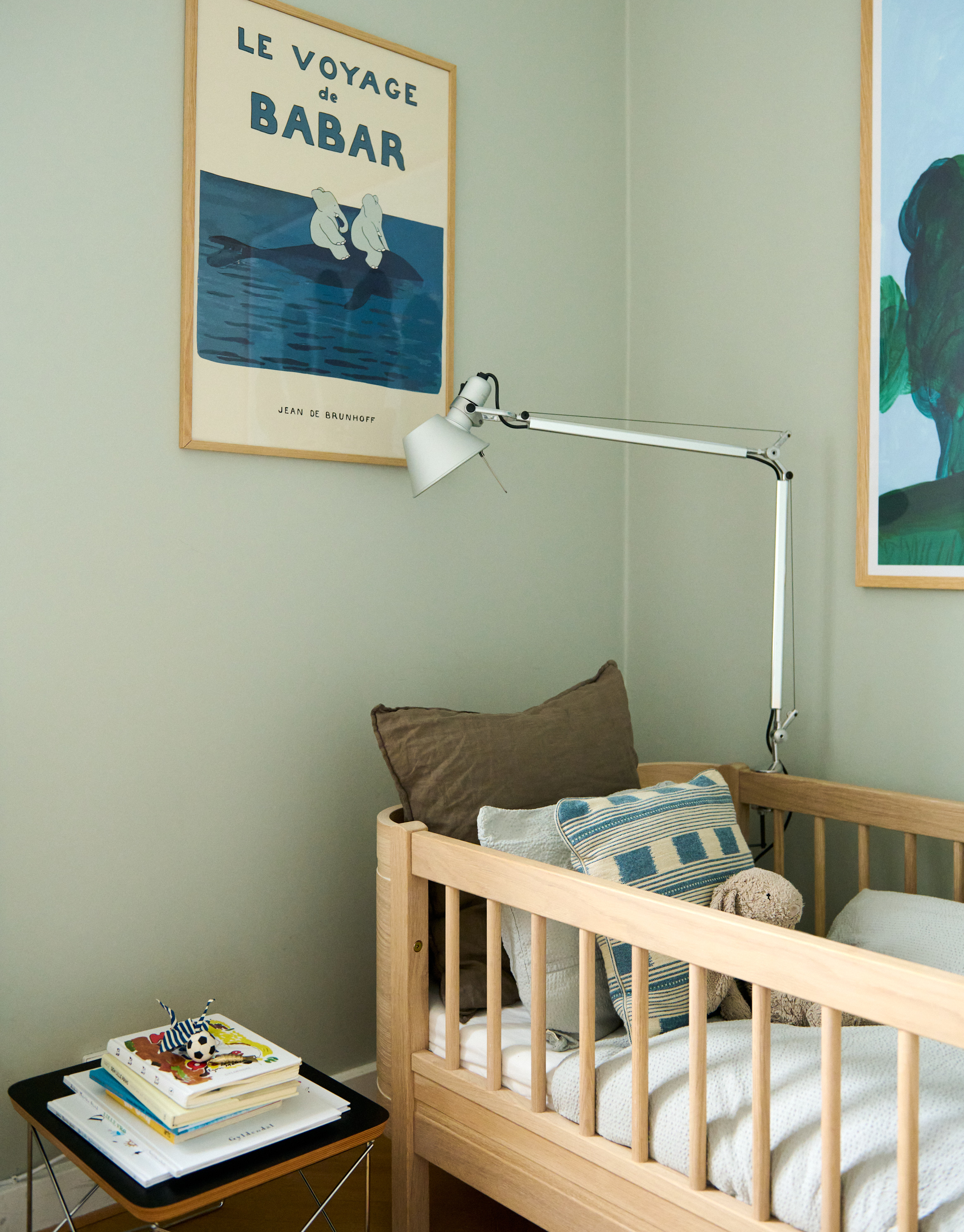 At the heart of the room is the Wood Mini+ junior bed in oak, offering both security and style. A new, height-adjustable desk has recently been added — a practical investment that will adapt as Theo grows. The large bed can also be converted into a bunk bed, ensuring the room remains functional in the years ahead.